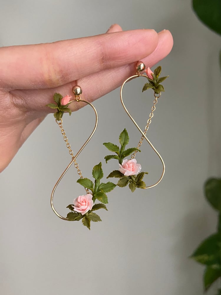 This rose beauty is created fully from polymer clay with roses and leaves seated along the wire and shaped with a chain 🌱